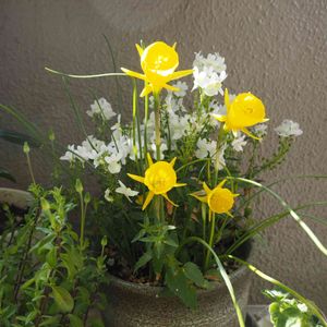 やっと咲きました 可愛い😍 ラッパ咲き水仙 小さいお花🌼