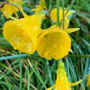 おはようございます。 雨上がりのペチコート水仙 金魚の口みたいで可愛いです💛🌼💛 今日も一日 良き日でありますように🍀🍀🍀