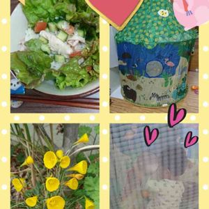 4/17(水)⑥ カオマンガイはタイ風鶏肉の炊き込みご飯でした💡 娘がお友達にレシピ教えて貰ってナンプラーを使わない和風な味付けにしてました。 味付けは薄めなので、かけるタレもありました💡 レシピ教えてくれたお友達とは別のお友達から出産祝いに頂いたテントの中の👶 正座してオモチャを入れるボウルや、音の鳴るオモチャで1人遊びしてご機嫌でした🤗🎶 娘宅近くでペチコート水仙にまた出会えました‼令和になったら、ペチコート水仙をアイコンにしようと思っていたら出会ったので、5/1からこの水仙にします🤗🎵