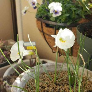 おはようございます😊晴天☀️です🎶 年末半額セール✨でゲットした子達をUPしていきま〜す😆いくつかあるのでお付き合い下さいませ😆 原種スイセン モノフィラス💕 初めて見た子でペチコート咲きって言うらしいです😊 透明感のあるとっても綺麗な子です🥰 出逢えて嬉しいなぁ💕