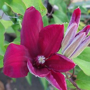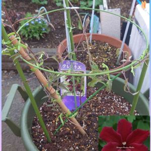 2021年10月に3号ポットでお迎えした クレマチス パテンス系 ヴェスタプラッテ** 開き始めました🙌 記録用…☆~☆~☆~ 《品種説明》 Westerplatte 開花期:5から10月 花 径:10から12cm 草 丈:約2m 咲き方:新旧両枝咲き 剪 定:弱剪定作出国:ポーランド 作出者:Stefan Franczak 質感のある濃いベルベット赤色の大輪。 四季咲き性