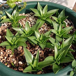 また やっちゃうとこだった💦 休眠中の鉢の上には成育中の鉢を乗っけてる よかった気付いて😵💨 起きた模様♪ ~シラーベルビアナ~ (オオツルボ)