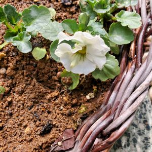 2月28日 我が家の種蒔き子 です ちっちゃな白色のビオラ🤍さん 籠に植えたので土を足しても足しても水やりするたびに土が溢れてしまいます なのに咲いてくれて💮 ありがとうね✨💕💕💕