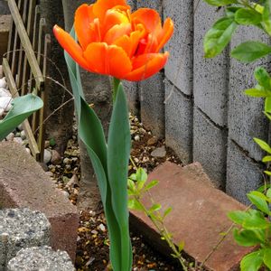 4月5日 連投失礼します 1️⃣枚目 チューリップ🌷さん 「アイコーン」八重咲き オレンジ❤️色です 2️⃣枚目 チューリップ🌷さん 「リムジン」八重咲き 黄色💛です