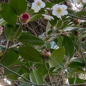 2021.3.24 紅卜伴(べにぼくはん) 1番咲はかなり上で、これが精一杯の拡大💦 まだ開く途中❣️ 下で手に届くツボミも早めに開きだした💕 これで咲いたらどの位の大きさかが解る✌️ 大きさによっては南蛮紅の可能性も有る🤔⁉️
