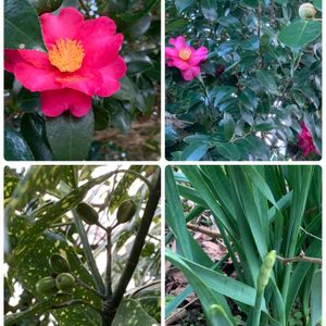 2021.12.11 裏庭の様子 裏庭に行くと先日は葉っぱだけで出てるなぁと思ってた 日本水仙のツボミができていてビックリ😳‼️ こんなに早くからツボミができてたんだぁ💦 確かにGSでは、もう咲いてる所もあるもんなぁ🤔 ↖️:サザンカ ↗️:紅卜伴のツボミ ↙️:アオキの実 ↘️:日本水仙のツボミ