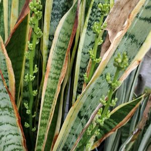 サンスベリア トラノオ: 外に出したらキズだらけ でも花がたくさん咲きそうです。