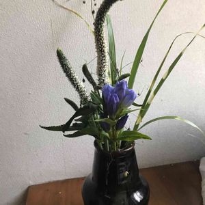 おはようございます😊 お稽古のお花 ✨٩(ˊᗜˋ*)و リンドウ、タカノハススキ、トラノオ、シキンカラマツソウ、クサレ玉 暑さで、元気がなかったので、 水切り、新聞紙に包んで 深水につけておき、一日経つと 復活✨ 🤗 バンザイ お花の名前間違えて、ちびまる子さんにご指摘して頂きました。 🥵 感謝💐🙋♀ きょうも暑くなりそうです。水分補給願います。 只 [冂] [三]