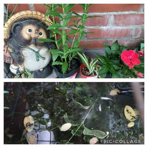 お疲れ様でした☺️💓💓 今日の道の駅でも、やっぱり買っちゃいました😅💦💦 オリヅルラン60円?他2つも1つ200円? 価格破壊だー😁🎶🎶 あ、下の写真は池のメダカ。メダカも売ってたけど、この子たちが居るから、止めました😅💦💦