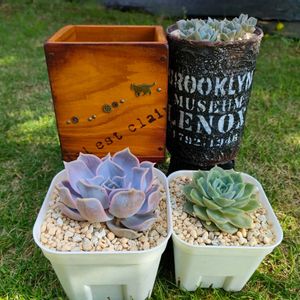 届いた荷物を見て 「あれ?睡蓮1つでこんなにおっきいんだ。 葉っぱが折れないようにかな。」 と思いました。 送り主を見たら見覚えのある名前が…😳 あつさんでした😲 おけけの日かなんかの余剰苗押しつけの返礼品でした。 貰ってくれてありがとうなのに、お礼が来てしまいました。 いただいたエケベリアを、うちでは希少な白プレステラに植え付け。 白牡丹はせっかくなので、前回いただいたリメ缶に植え付け。 リメ缶デビューいたしました😁 来年には白牡丹が大きくなりすぎて倒れる様子が浮かびます(笑) ちょっと木製のものは恐れ多くて使えませんでした(笑) フリマアプリで売れるレベルの出来栄えでびっくりです😳 他にも常識をくつがえすタオル(帯に書いてある)もいただきましたが、写真には写っておりません。 不純な動機のプレゼント企画なのに、素敵な返礼品をありがとうございました😊 キンカンが後ろに落ちてると思っていたら、ちっこいミカンでした(*´-`)