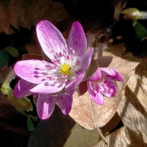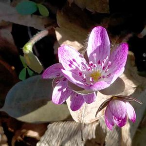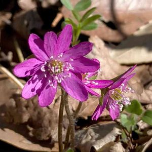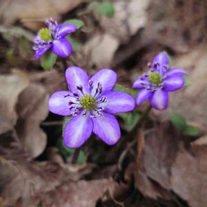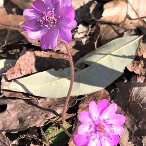 おはようございます☺ GSで雪割草をみてから、自分の目で見たくて※。.:*:・'° 先日近くの植物園にいったら、 この色が咲いてました~💓 落ち葉のお布団が気持ち良さそう💓 お隣には、カタクリが咲いてました😊 植物園ならではの光景ですね~😂 🏷️日曜日は日本を感じる和の花 初参加させて下さい😊