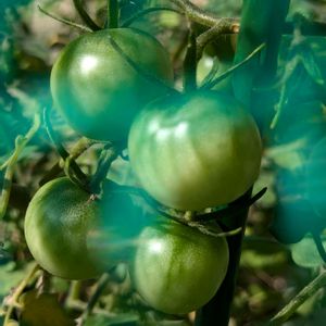 今日のお花 トマト お花の時期は終わってしまいましたが 今朝のミニトマト 二度目の結実期に入ってます🍅 青い実がたくさん付いています🫒 (鳥よけネット越しの撮影)