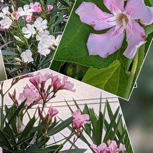 やさしいピンクの夾竹桃 アカメガシワの葉っぱ☘️の上に落ちていて、最初、何の花だか、分からなかった😅 夾竹桃は八重だと思っていたし。 🏷19日はピンクの日♪に参加します