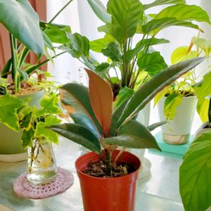 ご無沙汰してます🌿 暑くて多肉さんたちはカピカピ、ジュレなのでなかなか投稿できず🥲 ダイソーでフィカスルビー(ゴムの木)を手に入れました😊 葉っぱに模様があって可愛い💚 ピンクになるの楽しみです🩷