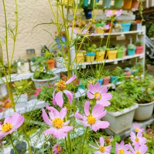 植えてないけど、昨年母が種をばらまいたみたいで✨ コスモスがアチラコチラに咲いてます😊 風に揺られてかわいい🩷