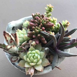 多肉寄植え♡ 真ん中のエケベリア属ぽいかたちした子は何て名前かなぁ?わかる方いたら教えてください(´∇`)
