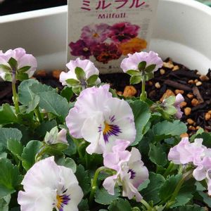 フィオリーナ花芽沢山あがってきてます。 後ろのビオラは名無しですが 同系色でまとまってきていい感じ オキザリス咲いてくるのが楽しみです。