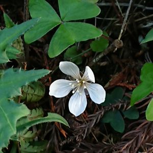 ミヤマカタバミ(深山片喰) カタバミ科の多年草で山地の林下に生えています😉 初春に白い五弁花を咲かせます😊 ハート型の緑葉との対比がいいですね😃