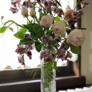 昨夜の雨でポキッと折れてしまっていたスイートピーと、直ぐに散ってしまうヘリテージを一緒に窓辺に飾ってみました🌹