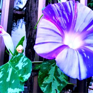 フェンスの朝顔 通り道のお宅に 朝の散歩道 ご近所散歩🚶♀️ フェンスから顔を出して咲いている朝顔、迚も綺麗でした。