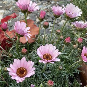 少しずつ庭に並べた鉢植えに緑が増えて、春が来た‼︎と、少々浮かれ気味…ですが、まだ花は寂しく開花株に頼っています^_^ ①ローダンセマム・プチマカロン 可愛いくて…美味しそうな…🌸 ②アフリカンアイズ、ヒューケラ、カーペットカスミソウと一緒に…♡ カーペットカスミソウは初めて…多分、庭や花壇に這わせた方が魅力的な花なのでしょうけど…しはらく鉢で辛抱してもらいます🤭