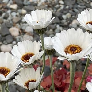近くの山々が、少しずつ柔らかな萌葱色をのせてくるのを見ながら、季節が動いてる‼︎ と実感します🌏 白い花に淋しさより優しさを感じるのも、暖かい季節ゆえの感覚なのかもしれませんね…♡ ローダンセマム アフリカンアイズ そして…冬越しのスーパーアリッサム・フロスティーナイトも可愛い白い花をゆっくり増やしています! 狭い庭の4月は、芽吹きばかりが目立って「花の春」にはまだまだ近づけません^_^