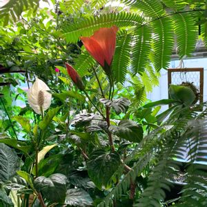 ベランダでいい感じで日に当たっていた アンスリウム 窓辺へ引っ越ししてひと月 蕾が上がってきました❤️ 春に✂️し植え替えて脇から増えたので 葉っぱも花も小さいですが 真っ赤はpowerを感じます😊 あーー 部屋に引っ越した植物🪴で窓際、おしくらまんじゅう😣 エバーフレッシュ、スパティフィラム、奥にも色々... 少しでも日に当てたいので窓際ジャングル🌿 写ってないけど上にもぶらぶら🪴 皆さん、同じですよね😅
