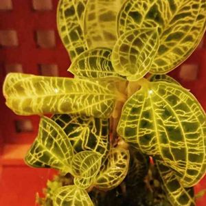 今朝のジュエルオーキッド✨ ひろさん、少し引いてみたよ(*´∀`) こんな感じ? 根本がいつのまにか苔々しくなってきてシダみたいのも生えてきたし…面白い。 でも、鉢が狭そう…。