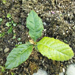 チビが知らない間に植えていたビワ(。-∀-) まだまだ毛も生えない幼木❗ 種からの発芽率はめっちゃいいけど、いつになったら実がなるやら(笑) 私も子供の頃植えてました~❤ 残ってないけどww