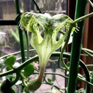 🌟咲きだしました🌟 今年は咲かないのかしら?と 心配していたけど、 植え替えた鉢の居心地が、悪かった ようす。 対策したら、回復して開花~✨ ホッと(*´-`)しました。 キョウチクトウ科 セロペギア属 サンダーソニー 別名 パラシュートプランツ