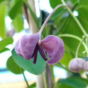 裏庭の5葉あけび ぷっくりとした紫色の蕾が 実のようで美味しそう…だな〜 なんて眺めていたら 今日、開花し始めていました🌸🤗
