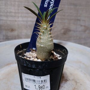 仕事帰りに 出会っちまいました😅🌱 親指サイズの Pachypodium Grachibilius🎉 写メ撮るのに ひん曲がりを土でちょっと矯正…😅 今はちょっと四角いボディ 丸っこくなるのかな😄🌱