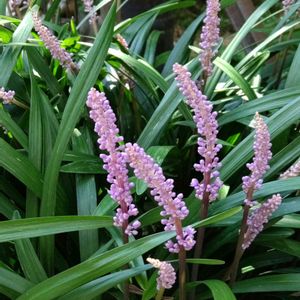 ヤブラン(藪蘭)が 淡紫色の穂状の花を咲かせています。 濃い緑の葉っぱとのコントラストがシックで 素敵ですね。 日本各地の山や林に普通に生えている多年草で 藪に生え葉の形が蘭に似ていることから そう名付けられたのだとか…。🤗✨ 日本 中国 朝鮮半島 東アジア原産 キジカクシ科ヤブラン属の常緑多年草