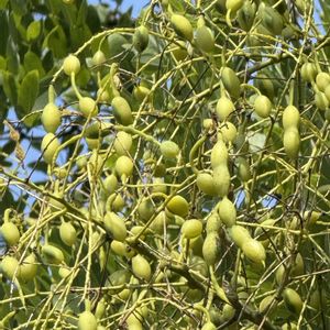 「エンジュ」槐 豆果が鈴なりです シダレエンジュの木も同様に沢山の🫛莢がぶら下がっている 長居植物園10/1