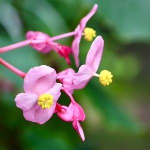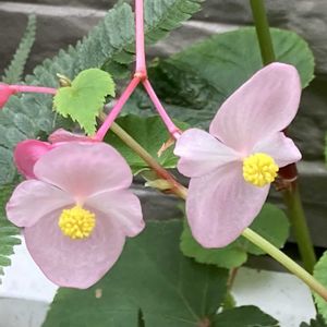 シュウカイドウ[秋海棠] (シュウカイドウ科) 中国原産🇨🇳の多年草 バラ科のカイドウ[海棠]に似ているところから、この名がついたそうな。江戸時代に園芸用として日本に持ち込まれ、現在では本州・四国・九州の湿度の高い山野に自生。花は雌雄同株で、花弁のように見えるのは萼。これは雄花。黄色いポンポンの花粉をつけたのが雄花♂ 横浜イングリッシュガーデンにて撮影📷