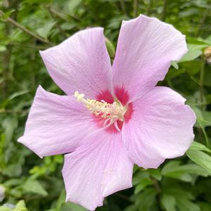 🌸ムクゲ(木槿) 東洋のハイビスカスっていう雰囲気の花です。中国原産で平安時代には渡来していたため夏の茶花としても欠かせません。 ⚫︎アオイ科 フヨウ属 ⚫︎原産 中国 ⚫︎花期 7月〜10月