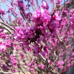 街中散策で出会ったハナズオウ(花蘇芳)が 濃いピンク色のちっちゃな花を枝いっぱいに咲かせています。 スオウ(蘇芳)の木から採った染料と花色が似ていることからそう名付けられたのだとか…。 花枝の先端部に展開する葉っぱは 艶があるちっちゃなハート型でとっても可愛いです。 ※スオウ(蘇枋)とは…インド マレー原産の豆科の木。 芯材から抽出した色が黒みを帯びた赤で 染料として使われてきたようです。 中国中部原産。 マメ科ハナズオウ属の落葉低木。