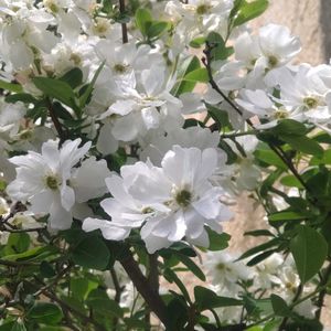 今日のお花は 純白のリキュウバイ(利休梅)です。 主張し過ぎない清楚な花姿が茶人に好まれ 茶花として広く親しまれて来たのだとか…。 名前に梅と付きますが 梅とは属が違います…。🤗 中国揚子江下流域原産。 バラ科ヤナギザクラ属の落葉低木。
