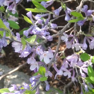 お花好きの方のお宅の庭先で出会った初めましてのこの花は フジモドキ(藤擬き)です。 藤と名前が付きますが ジンチョウゲ(沈丁花)の仲間です。ただ 沈丁花のような香りはありません…。 花びらのように見えるのは 萼なのだとか…。😄 中国原産。 ジンチョウゲ科ジンチョウゲ属の落葉低木。