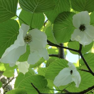ハンカチノキ ミズキ科ハンカチノキ属 5月の風に白い2枚の苞葉を翻しています🤍🌳🤍 花は、中心に雌蕊が発達した両性花と その周りの多数の雄蕊からなっています🤍🌳🤍😊