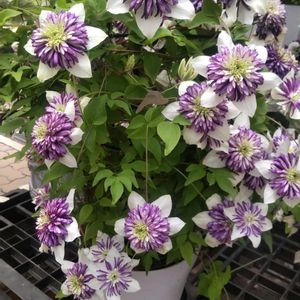 ホームセンターの園芸コーナーで出会った クレマチス ビエネッタは 花の中心が緑〜紫の万重咲きが特徴です。 また 外側の白く大きな花びらに見える部分は 花弁化した萼なんです。☝️ 今年伸びた新枝と前年に伸びた旧枝のどちらにも花を付ける新旧両枝咲きです。 四季咲き性が強く 花後に剪定するとまた開花するのだとか…。 中国 ヒマラヤ原産。 キンポウゲ科クレマチス属の落葉性多年草。