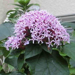 ボタンクサギが小さな5弁の花を密集して手毬状に咲いています。 花が牡丹のように美しく葉や茎には 独特の匂いがあるためその名が付いたようです。 極めて丈夫で地下茎が伸びて株立に なって広がります。 花には微かな甘いよい香りがします。 7月から11月頃まで次々と開花します。 中国南部原産。 シソ科クサギ属の落葉低木。