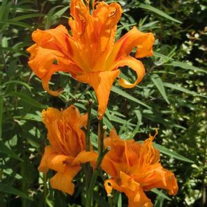 明るいオレンジ色のヤブカンゾウが咲き誇っています。 有史前に中国から渡来し寺院などに植えられていたものか野生化し、今では全国どこでも見られます。 学名のヘメロカリスは1日の美という 意味のギリシャ語が語源で美しい花が 1日で萎んでしまうことに由来します。 中国原産。 ユリ科ワスレグサ属の多年草。