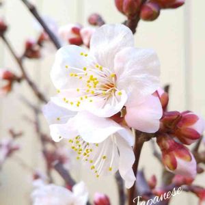 【No243 アンズ】 勤務先にあります。最初はウメと思っていたのですが、ウメにしては背が高いのと、花が大きいので?だったのですが、アンズだと教えてもらいました。 杏または杏子と漢字では書きます。甘酢梅(アマスウメ)が変化してアンズとなった説もありますが、杏子の唐音からアンズとなった説が有力かな?杏は木を、子は実を意味するようです。 別名は唐桃(カラモモ)。中国からきました。万葉集にも登場するので、それ以前に日本に来ています。英名はアプリコット。 2月の月の名は如月が一般的ですが、杏月(キョウゲツ)の異名もあるようです。 花言葉「疑い」「疑惑」は、アンズの実の花言葉。 「乙女のはにかみ」「乙女の恥じらい」「早すぎた恋」は、サクラ🌸よりも一足先に咲いている様子が、乙女がはにかむようだとか、恥ずかしがっているようだとかに見えるから。 「臆病な愛」は、サクラに似たところがあって、サクラとは違うけど、愛されるかな?と不安がるところからでしょうか? 2月23日の誕生花でもあります😊