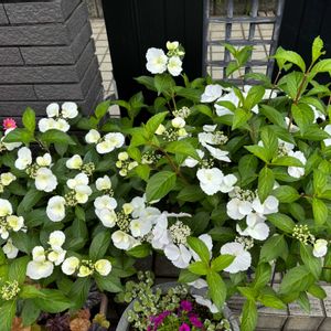 pwブライダルシャワー 玄関先に置いてたら これは紫陽花ですか?って何人にも聞かれる 去年挿し芽した株 いい感じに、こんもり咲いて来たよ 今年も挿し芽頑張ろ〜💪
