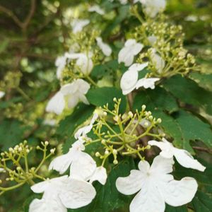 山道ノロノロ① ヤブデマリ(薮手毬) 山道ノロノロ走っていると、白いお花が咲いていました。 白い部分は装飾花です。 内側の一つが極端に小さいんです。 中心部分が両性花です。 写真広げると一つお花が咲いてます。 秋には赤い実がなるそうです。