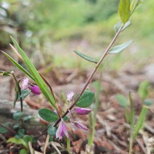 ヒメハギ(姫萩) [ヒメハギ科ヒメハギ属] 山頂で15cmくらいの背丈のヒメハギ見つけました。 曇りの為、花が開きそうなのに開きません。 1時間半くらい山頂にいましたが、開いた姿見れませんでした。 残念。