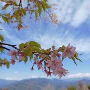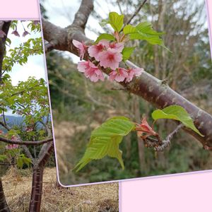 山の山頂近くに咲く桜です。 名前はわかりませんが、桜らしい木肌が好きなんです。 ショウジョウバカマの群生を見たあとこの場所にきます。 遠くに見える山と桜、素敵です。 🏷 土曜はお空の発表会