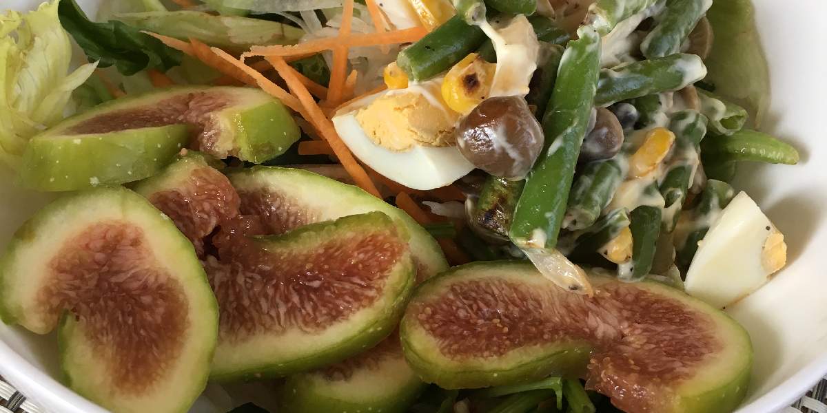 ガーデニング初心者です☺️ みなさまの作品をたのしく拝見しております🌷💕両親作のイチヂクをサラダでいただきました🍴写真をカバー画像にしてみました🥗✨よろしくおねがいいたします😊