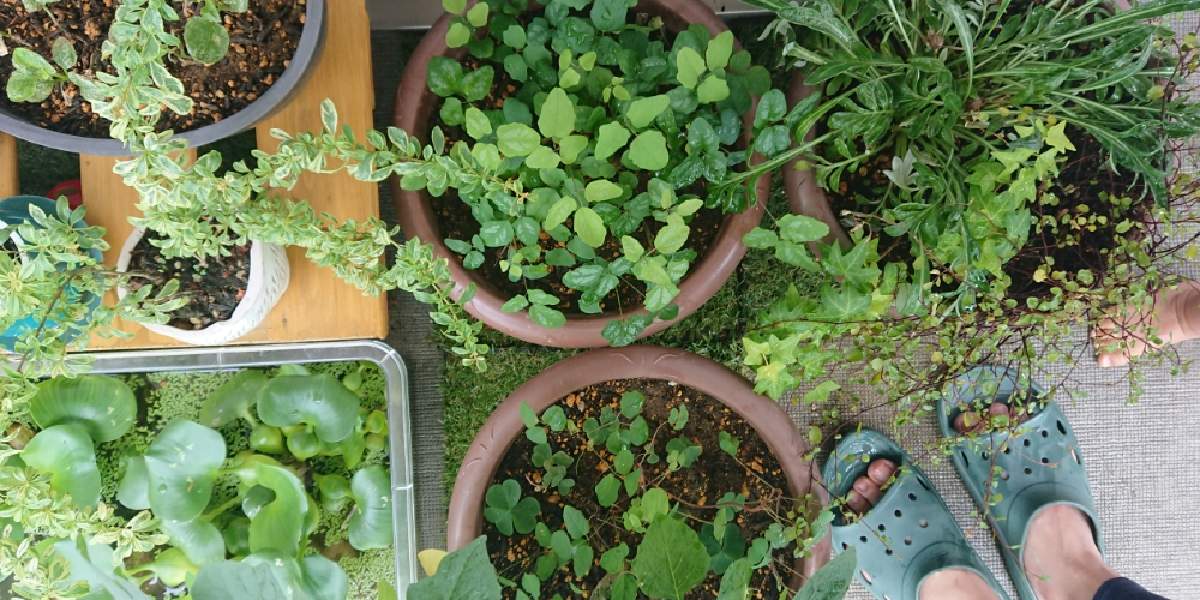 ベランダでガーデニングを始めたばかり…種をまいたあけびが芽を出しました